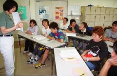 ◇◆生駒でオープンカレッジ 知的障害者に教授ら講義 19人が修了証 知的障害のある人たちに大学教育に触れてもらおうと、生駒市内の福祉作業所の代表者らで作った市障害児・者を守る連合会(草場暁美会長)は23日、市福祉センターで「第1回オープンカレッジIN生駒」を開いた。実際に大学教授らの講義を受け、修了証書を渡された参加者は「勉強って楽しい」と喜んでいた。 同連合会によると、障害者は養護学校高等部などを卒業しても進路が限られており、大学教育の場を求める動きが活発化。このため全国オープン・カレッジ研究協議会副会長の建部久美子・皇學館大学助手や桂良太郎・奈良大教授らに“開学”の協力を求めていた。 市内外から18〜40歳台の19人が受講。建部助手や皇學館大の学生らが講師となり、ボランティア約25人のサポートで、「健康科学講座」や「法学講座」、さらに芸術や剣道の体育実技も行われた。 受講者には修了証書が贈られ、生駒市上町、会社員今城美登里さん(30)は「食べ物の好き嫌いがいけないことがよく分かった。本当に楽しかった」と話した。オープンカレッジは秋も予定されている。 (読売新聞 奈良便り 6/24掲載分) |